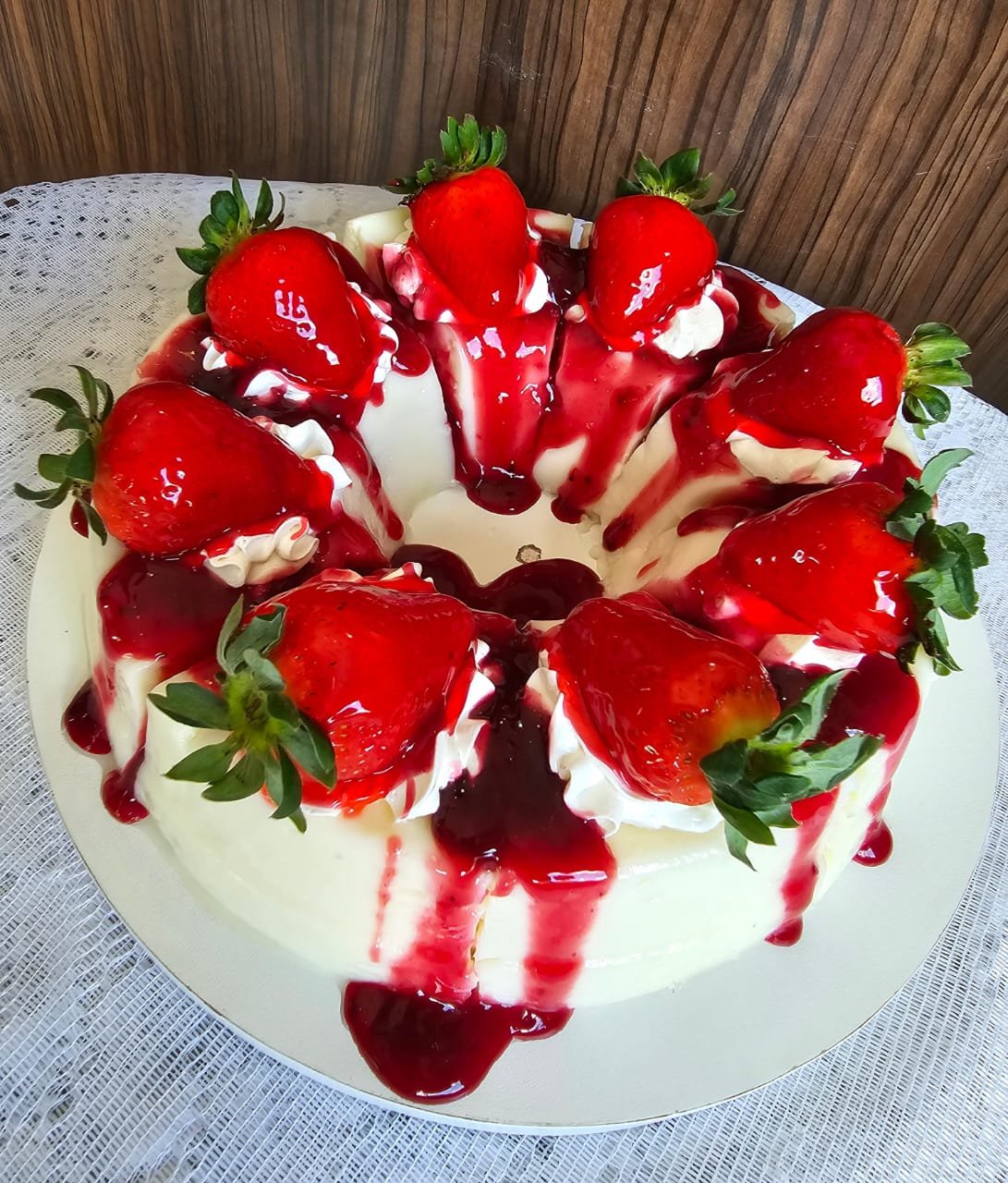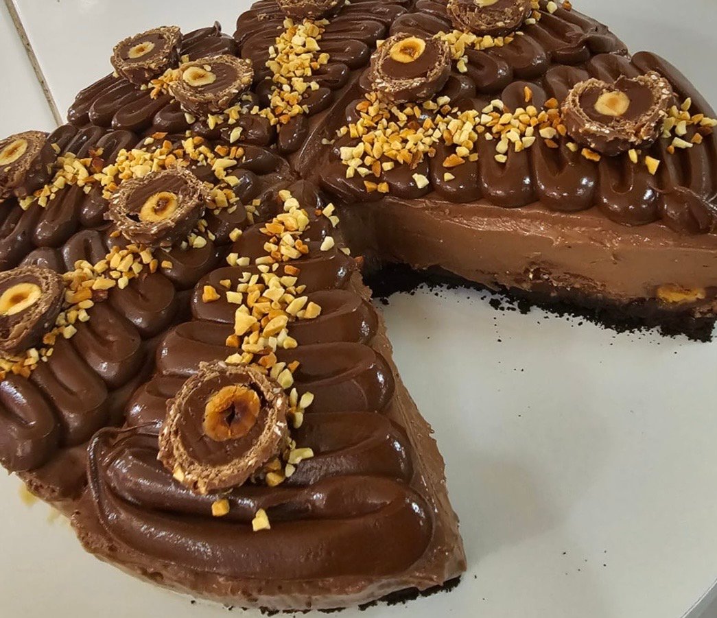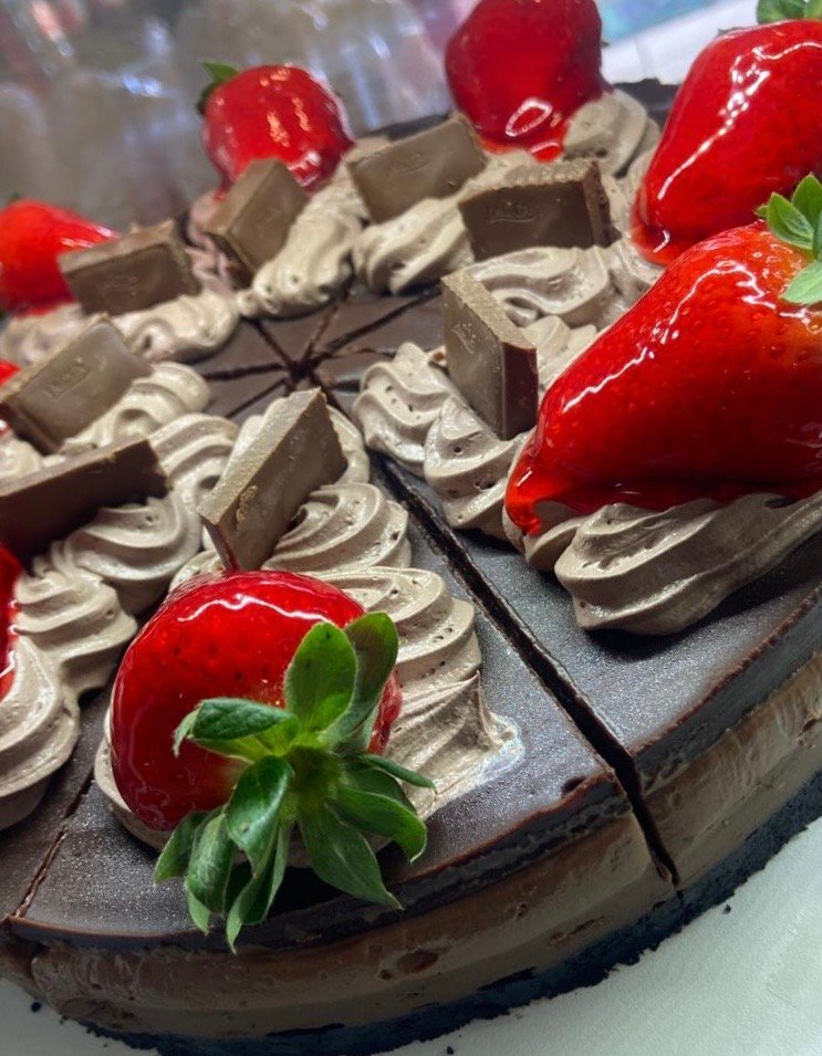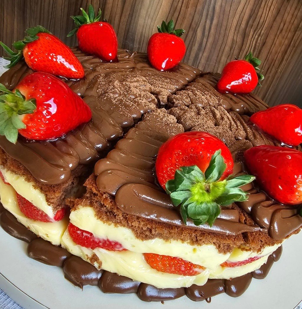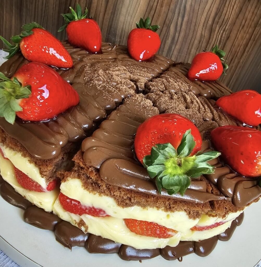 Bolo de Brigadeiro de ninho com morangos frescos e brigadeiro de Nutella na cobertura
