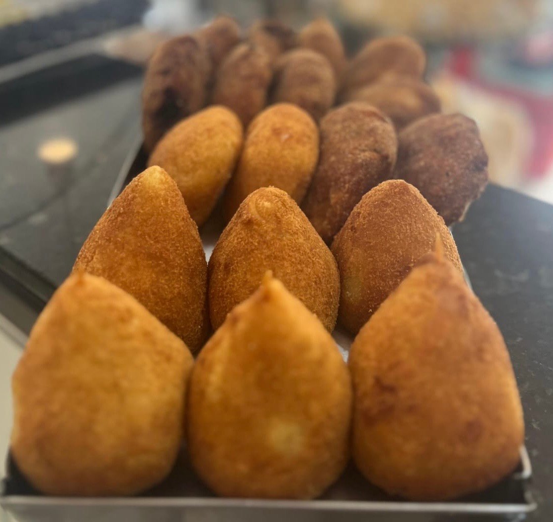 Coxinha e bolinhos de calabresa e presunto e queijo